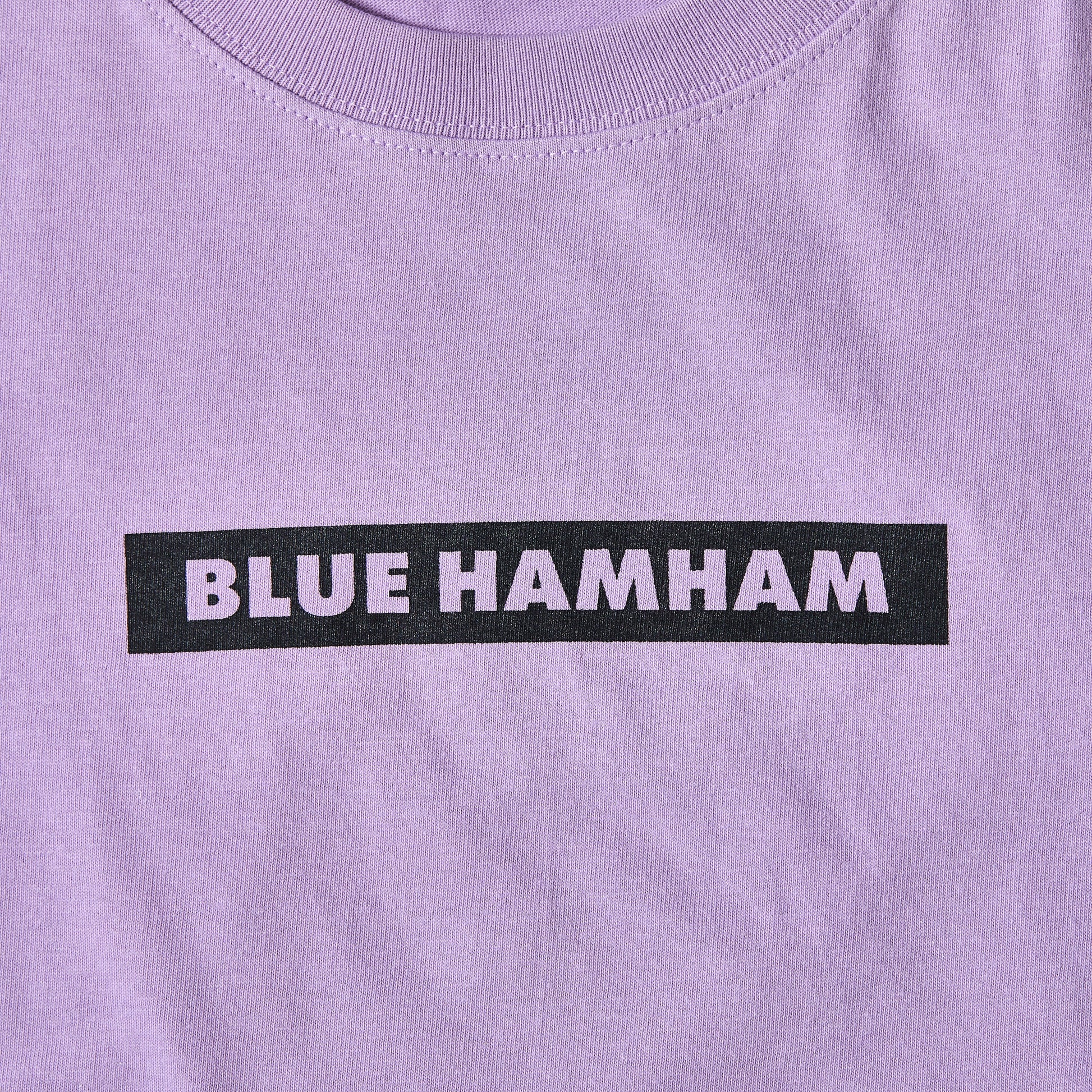 ブルーハムハムがトランペットを吹いているイラストをバックに大きくあしらったTシャツ。フロントはシンプルにロゴを敷いています。デイリーユースにぴったりな1枚です。